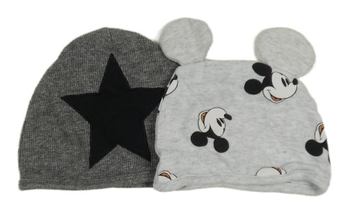 2x bavlněná čepice - šedá melírovaná s Mickeym + tmavošedá žebrovaná s hvězdou