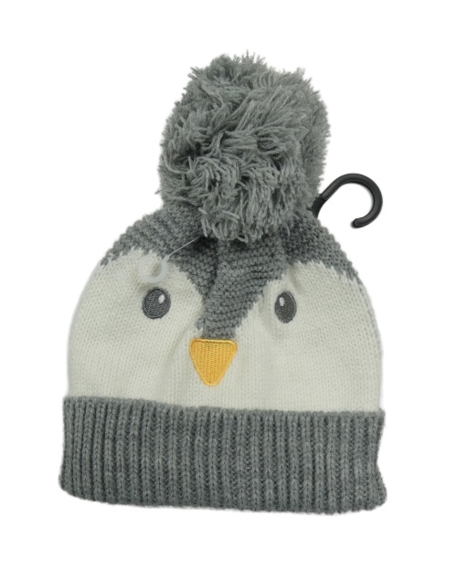 Nové - šedo-bílá pletená čepice s tučňákem a bambulí M&Co.