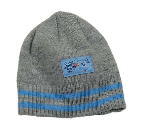 Šedá čepice s nášivkou a pruhy