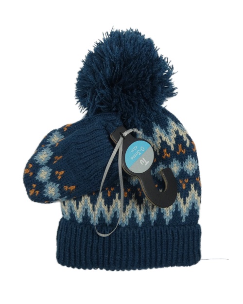 Nové - 2set - Tmavomodro-barevná pletená podšitá čepice s bambulí + rukavice