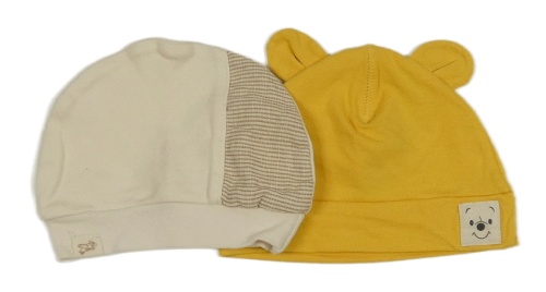 2x - Čepice - Smetanovo/hnědá s letadlem a pruhy, tmavožlutá s Pú H&M