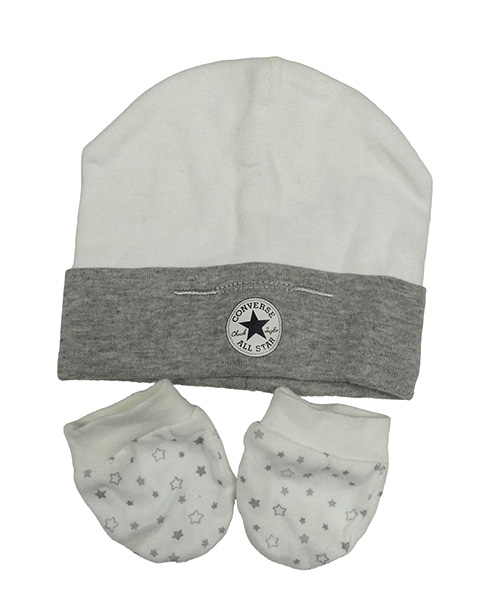 2 set - bílo-šedá čepice s logem - Converse + bílo-šedé s hvězdičkami