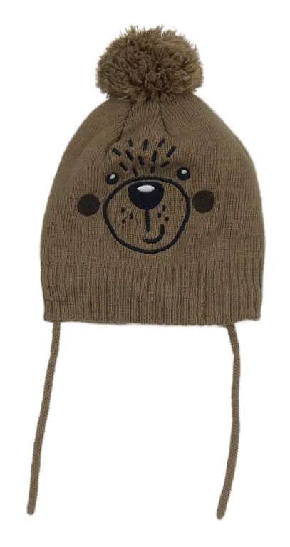 Hnědá čepice s čumákem a bambulí orsolino