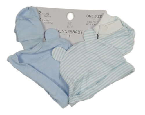 Nové - 4set - 2x čepice -světlemodrá + pruhovaná + 2x rukavice Dunnes