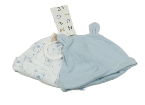Nové - 2x - Světlemodrá + bílá bavlněná čepice s medvídky Nutmeg