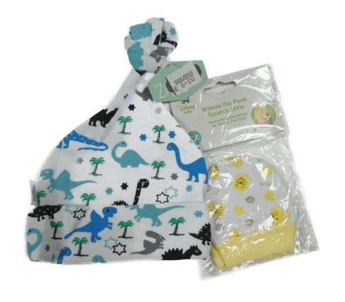 Nové - 2set - Bílá čepice s diny + bílo-žluté rukavice s medvídkem PÚ