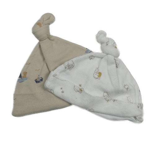2x bavlněná čepice - béžová s loďkami + bílá s Púem M&S