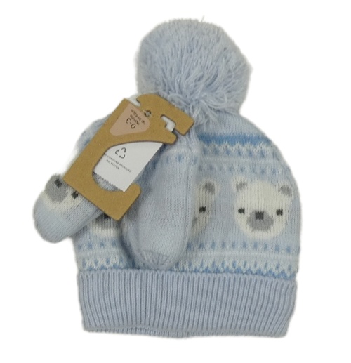 Nové - Světlemodrá pletená čepice s medvídky + rukavice Nutmeg