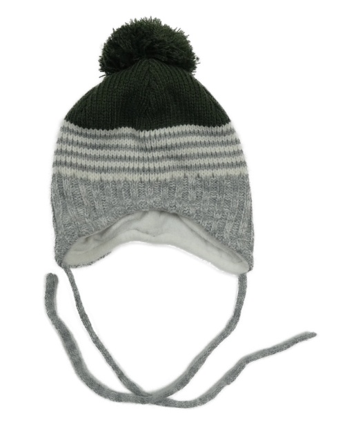 Šedo-bílo-khaki pletená podšitá ušanka