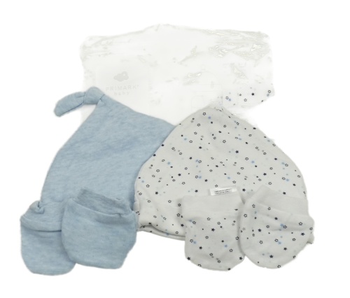 Nové - 4set - 2x čepice + 2x rukavice - modré + bílé s hvězdičkami