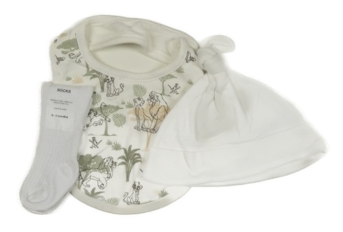 3set - Bílá bavlněná čepice + smetanový slinták s Lvím králem + bílé ponožky