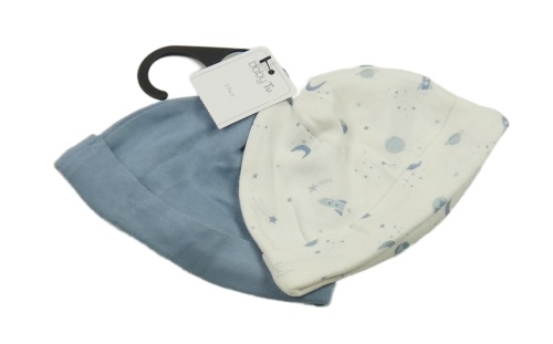 Nové - 2x čepice - bílá s obrázky + modrá Tu