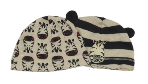 Nové - 2x béžovo-tmavomodrá čepice se zebrami