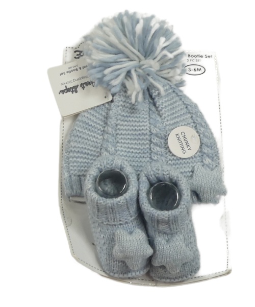 Nové - 2set - Světlemodro-bílá melírovaná čepice s bambulí + pletené capáčky s hvězdami