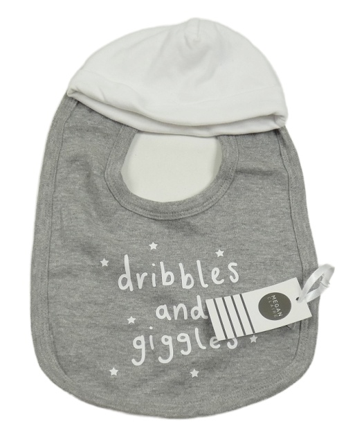 2set - Bílá bavlněná čepice + šedý melírovaný slinták s nápisem a hvězdami