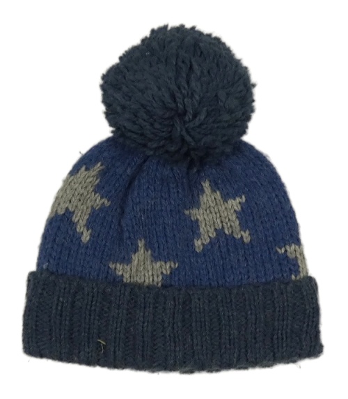 Modrá pletená čepice s hvězdičkami a bambulí Next