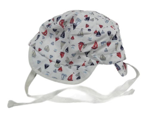 Bílá zavazovací čepice s lodičkami a kšiltem PUSBLU