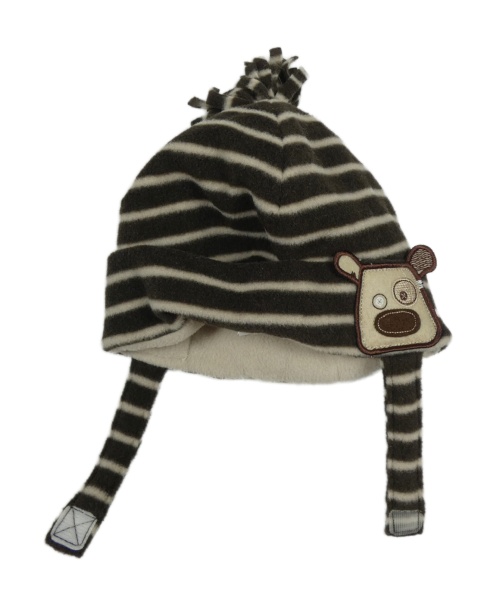 Hnědo-béžová pruhovaná fleecová čepice s pejskem George