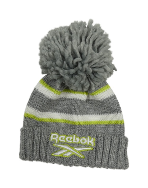 Šedo-bílo-limetková pruhovaná pletená čepice s logem a bambulí Reebok