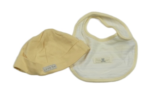 2set- žlutá čepice s nášivkou+ bílý pruhovaný nákrčník