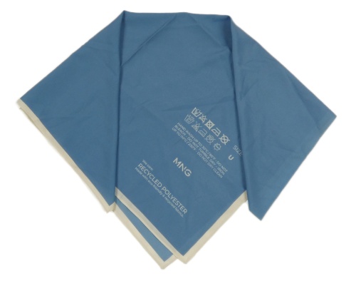 Modro-bílý šátek s nápisem Mango