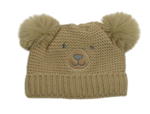Hnědobéžová pletená čepice s bambulemi - medvídek F&F