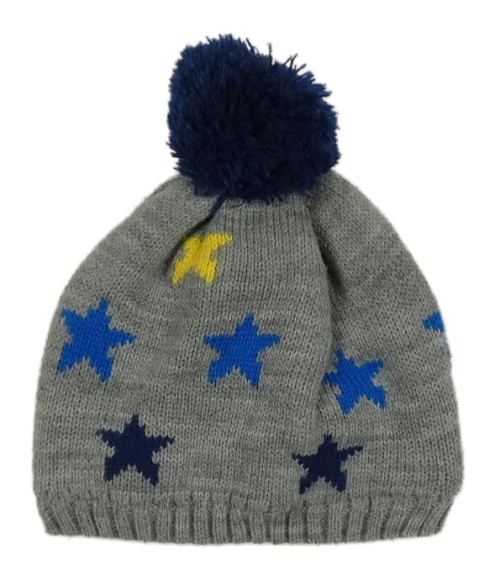 Šedá melírovaná pletená čepice s hvězdami a bambulí Lupilu