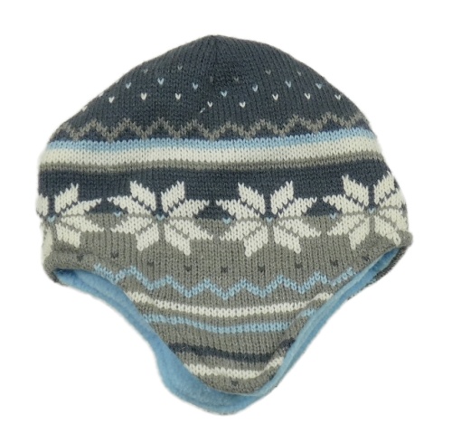 Šedo-bílo-modrá vzorovaná pletená podšitá ušanka