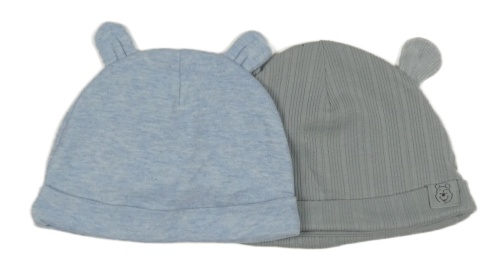 2set - 2x čepice s oušky - šedá + světlemodrá
