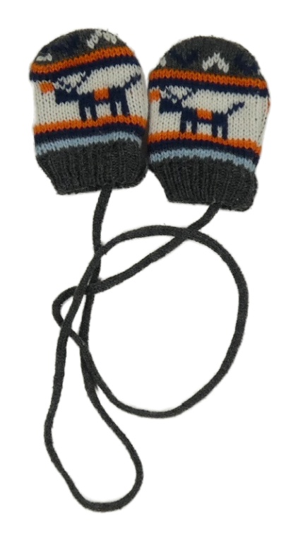 Tmavošedo-bílé vzorované pletené rukavice na šňůře se sobem
