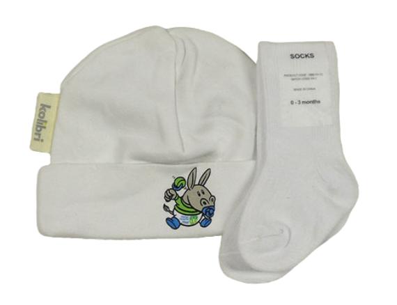 2set - Bílá bavlněná čepice s oslem + bílé ponožky