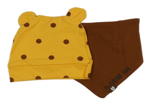 2set - medový slinták s medvídkem + žlutá puntíkatá čepice oušky