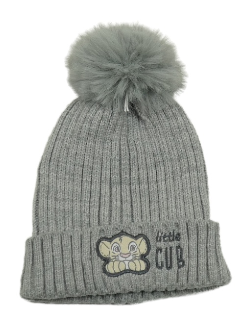 Šedá žebrovaná čepice se Simbou a bambulí Disney