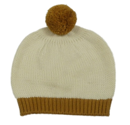 Krémová pletená čepice s bambulí