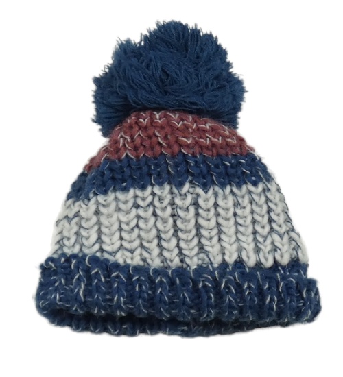 Tmavomodro-mahagonovo-bílá čepice s bambulí F&F