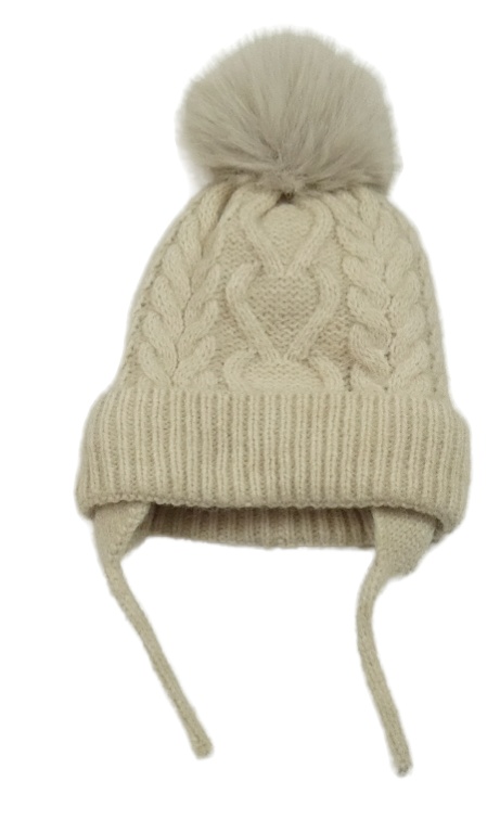 Smetanová vzorovaná pletená podšitá čepice s bambulí Primark