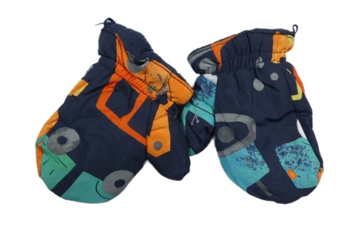 Tmavomodré šusťákové zimní rukavice s auty
