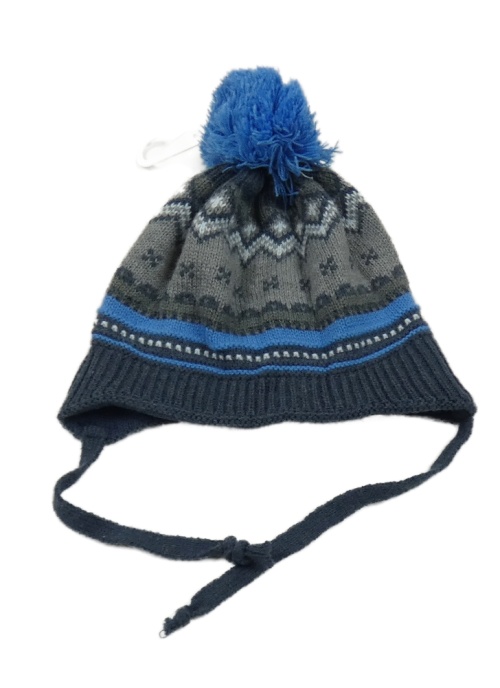Nové - Tmavošedo-modrá vzorovaná pletená čepice s bambulí