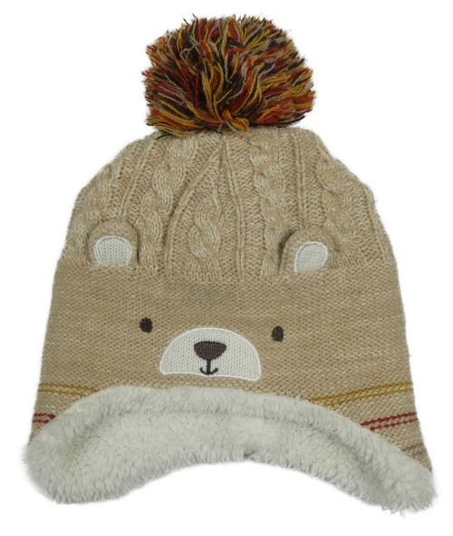 Béžová pletená zateplená ušanka s medvídkem Nutmeg