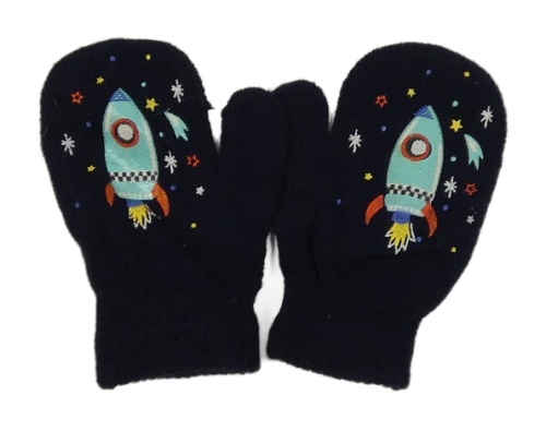 Tmavomodré pletené palcové rukavice s raketami