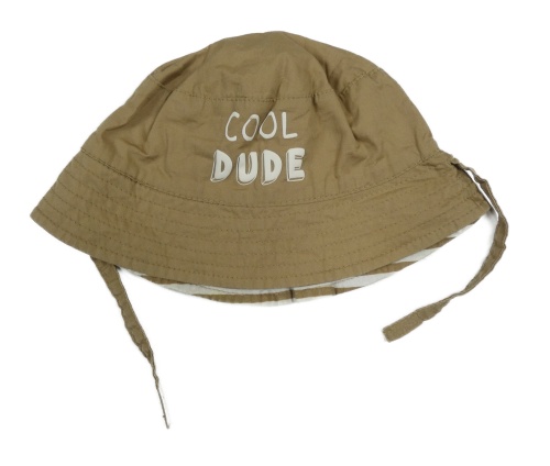 Hnědý plátěný klobouk s nápisem