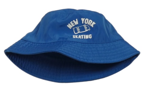 Modrý šusťákový klobouk s nápisem