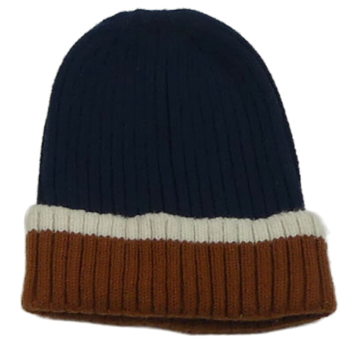 Tmavomodro-hnědá žebrovaná pletená čepice
