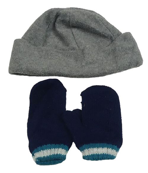 2 set - Šedá fleecová čepice + tmavomodré pletené palcové rukavice