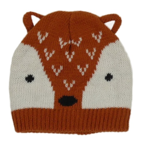 Hnědo-bílá pletená podšitá čepice - liška
