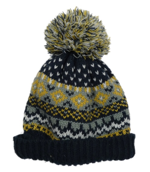 Tmavomodro-šedá vzorovaná pletená čepice s bambulí George