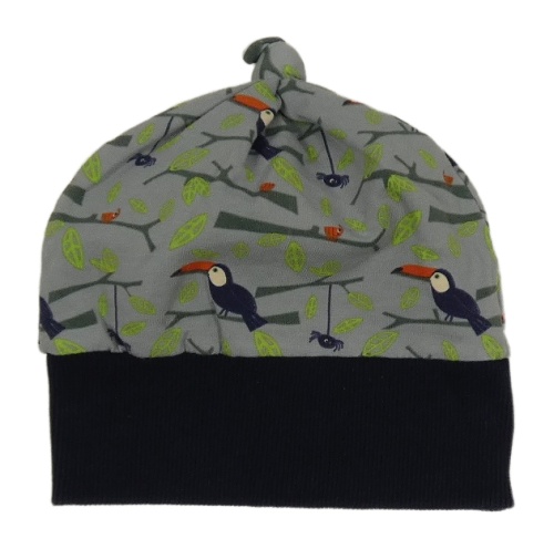 Šedo-tmavomomodrá čepice s listy a ptáčky