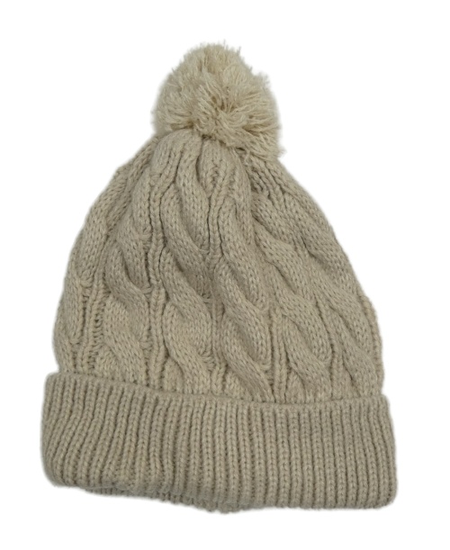 Béžová vzorovaná pletená podšitá čepice s bambulí