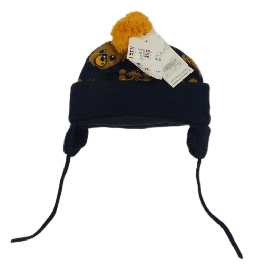 Nové - Tmavomodro-hořčicová čepice s medvídky a bambulí Dopodopo