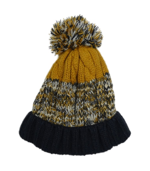 Hořčicovo-bílo-tmavomodrá melírovaná čepice s bambulí F&F
